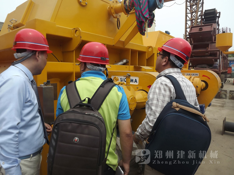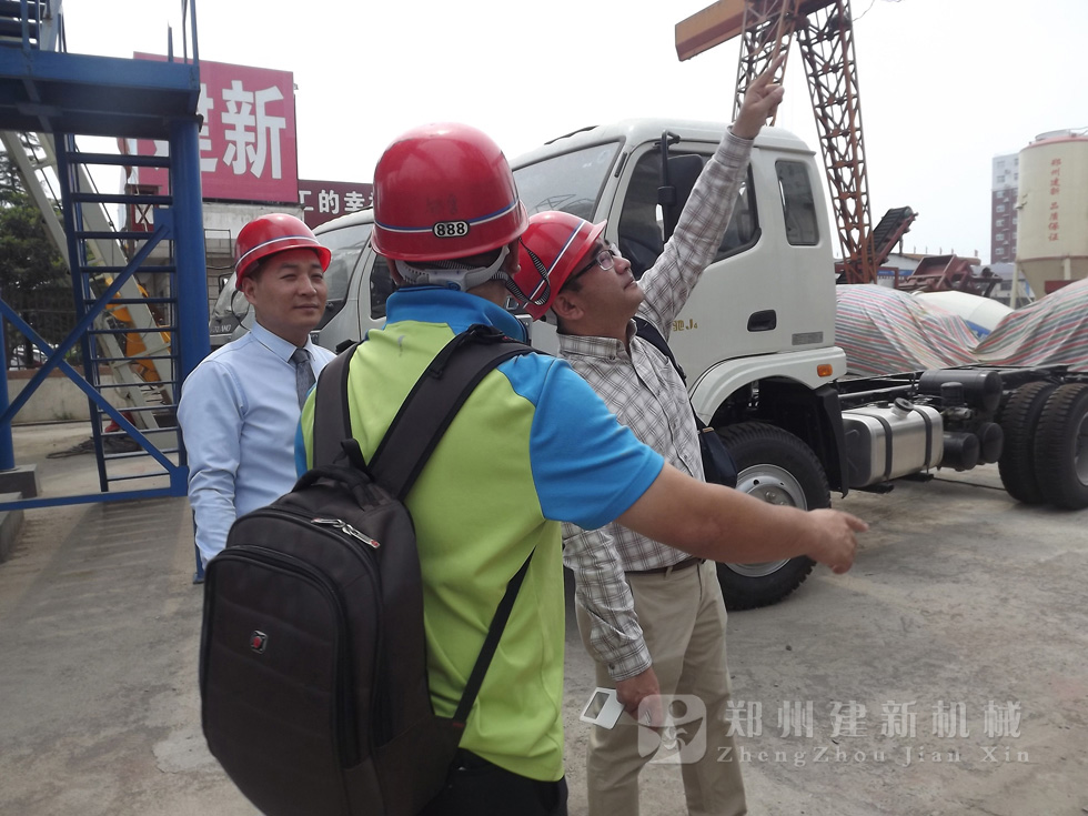 來(lái)自韓國(guó)的客戶在建新外貿(mào)部人員的帶下,參觀了大型混凝土攪拌站的設(shè)備,建新公司精湛的工藝、合理的設(shè)計(jì),客戶贊不絕口,直挑大拇指。